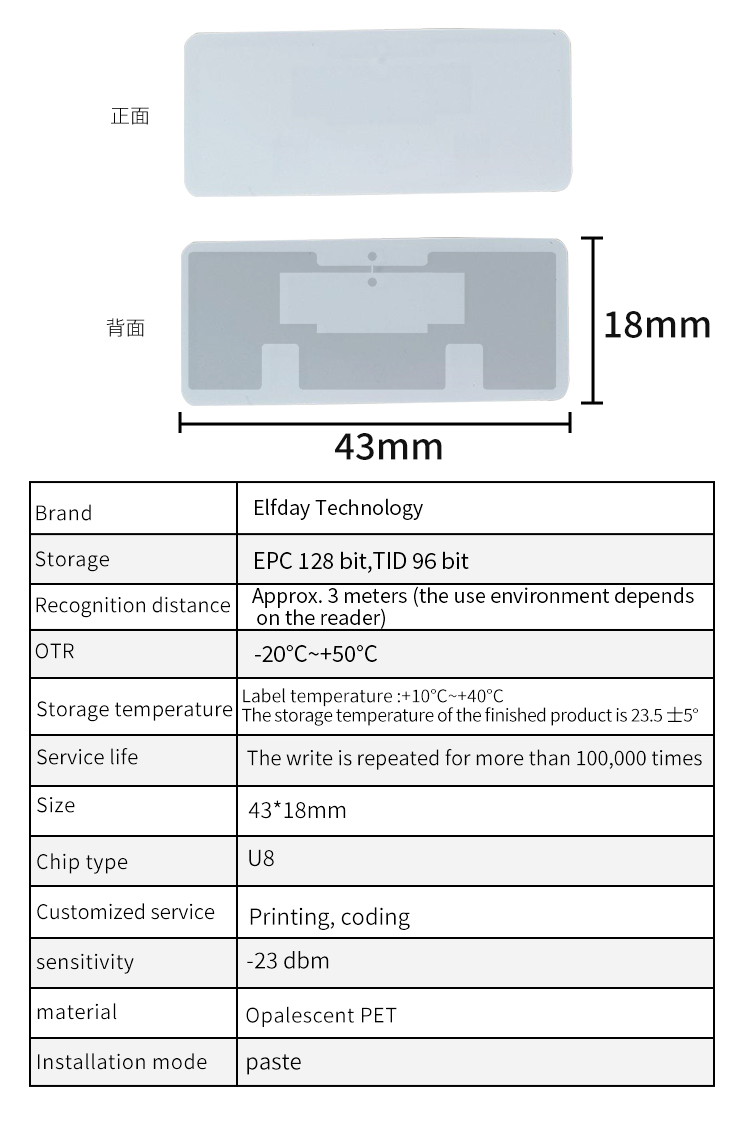 RFID Paper label parameters: