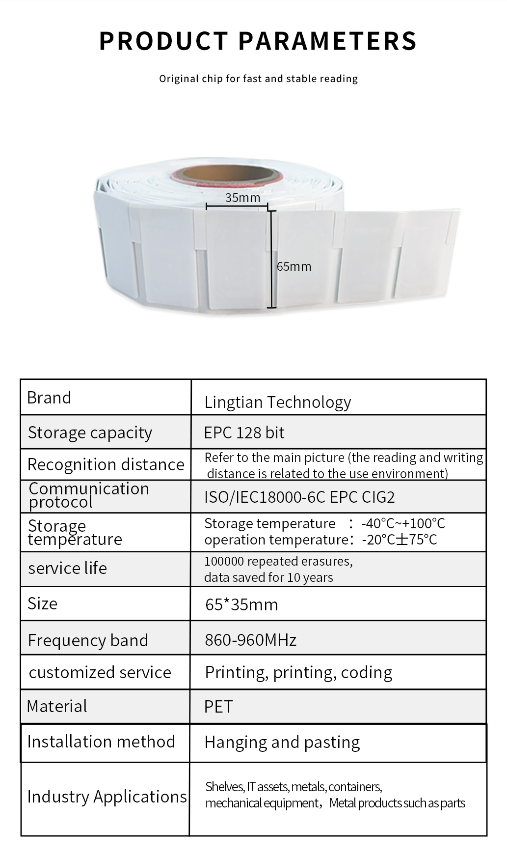 73*20mm KU7chip ISO18000-6c UHF RFID Sticker 915MHz Passive Remote-Reading Tag (Cost-Effective)