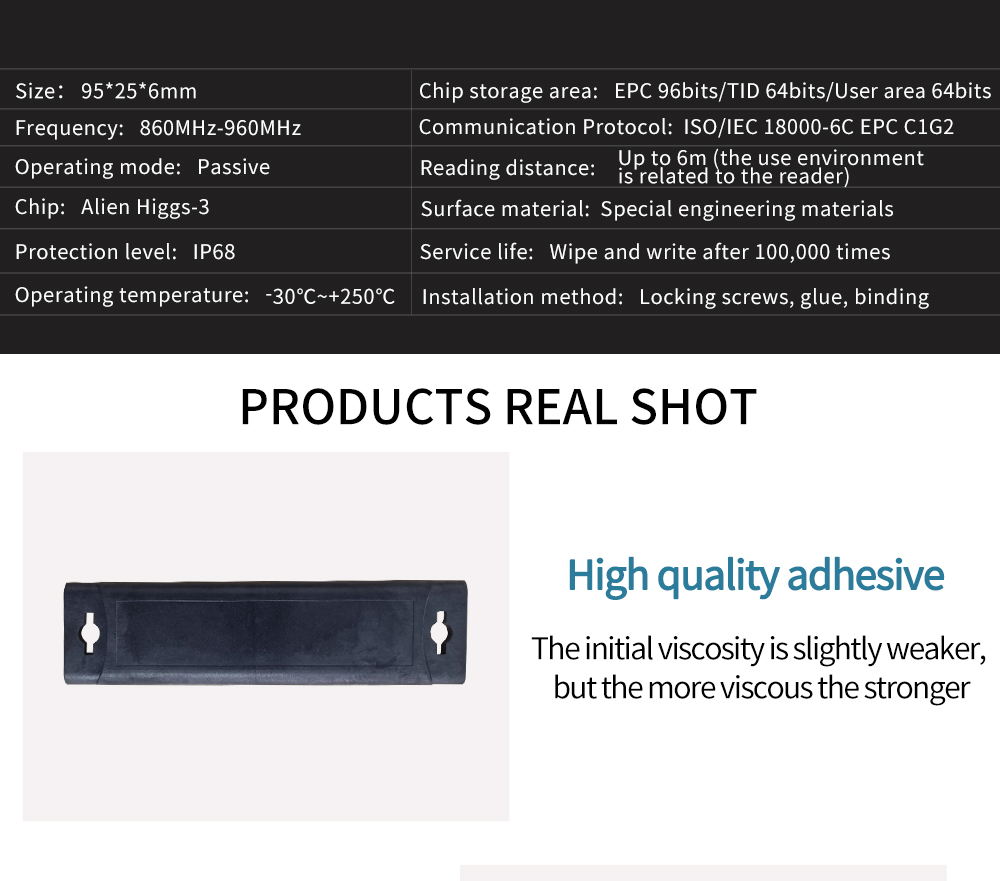 What can RFID UHF tags help you solve?1. RFID tags for rapid retail inventory management of clothing2. RFID clothing tags for quick checkout3. RFID clothing tag with anti counterfeiting function4. RFID clothing tags for warehouse management5. RFID technology inventory to avoid out of stock code6. Anti theft RFID clothing tag7. Quick cash register RFID tag8. RFID tags for quick inventory9. RFID tags can be used in industries with all warehousing functions10. Application: retail, manufacturing, clothing, logistics, e-commerce, auto parts and other industries