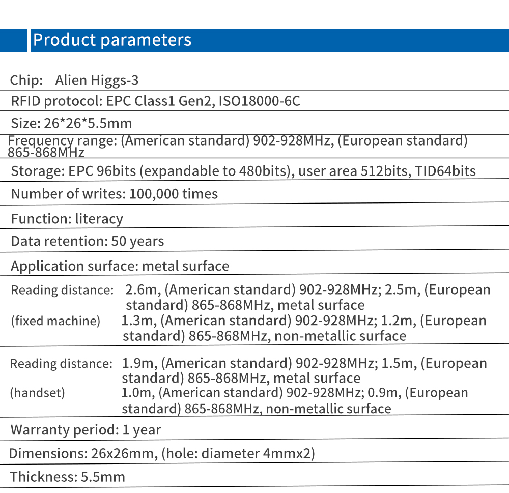 What can RFID UHF tags help you solve?1. RFID tags for rapid retail inventory management of clothing2. RFID clothing tags for quick checkout3. RFID clothing tag with anti counterfeiting function4. RFID clothing tags for warehouse management5. RFID technology inventory to avoid out of stock code6. Anti theft RFID clothing tag7. Quick cash register RFID tag8. RFID tags for quick inventory9. RFID tags can be used in industries with all warehousing functions10. Application: retail, manufacturing, clothing, logistics, e-commerce, auto parts and other industries