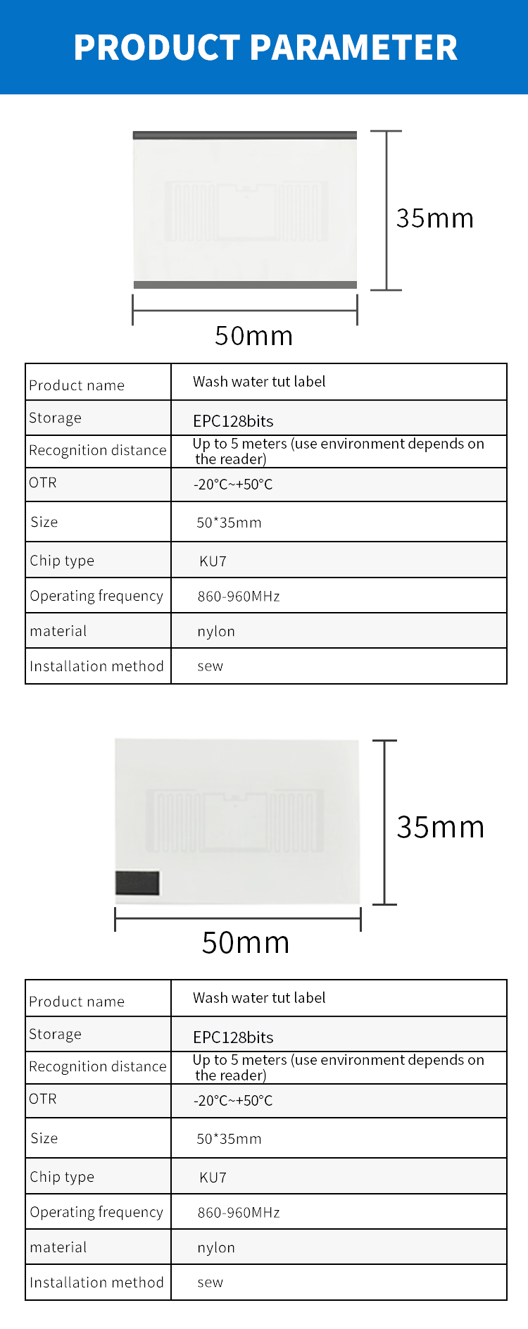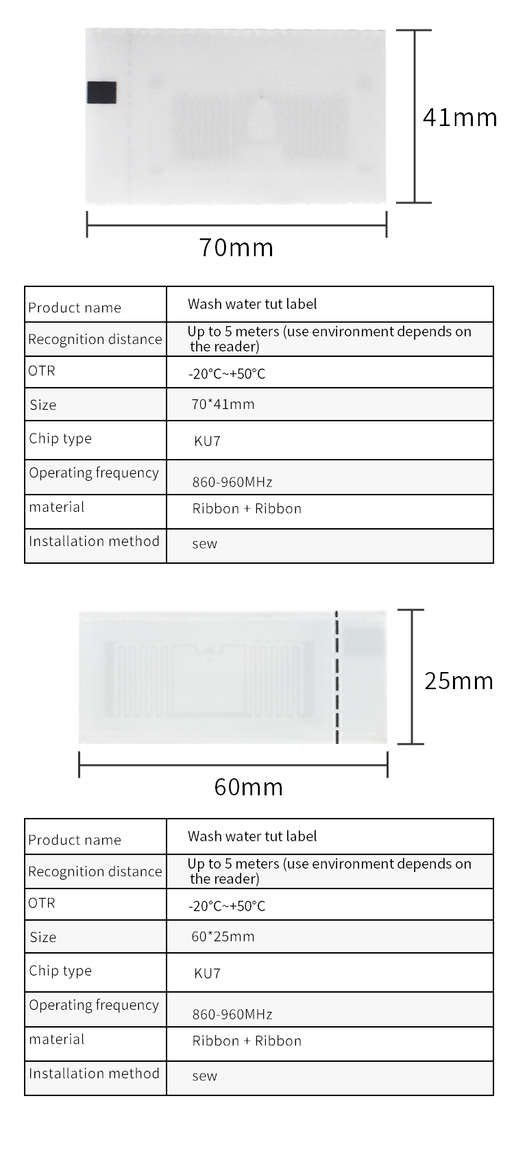 RFID paper label parameters: