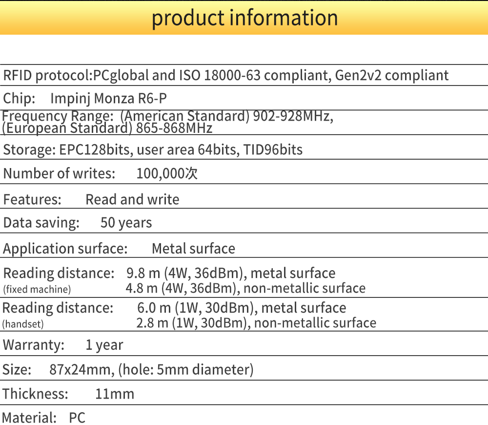 What can RFID UHF tags help you solve?1. RFID tags for rapid retail inventory management of clothing2. RFID clothing tags for quick checkout3. RFID clothing tag with anti counterfeiting function4. RFID clothing tags for warehouse management5. RFID technology inventory to avoid out of stock code6. Anti theft RFID clothing tag7. Quick cash register RFID tag8. RFID tags for quick inventory9. RFID tags can be used in industries with all warehousing functions10. Application: retail, manufacturing, clothing, logistics, e-commerce, auto parts and other industries