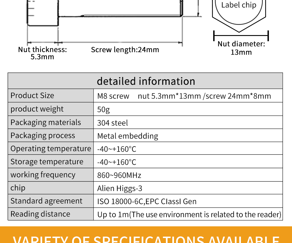 RFID label parameters: