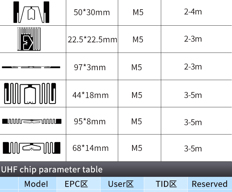 What can RFID UHF tags help you solve?1. RFID tags for rapid retail inventory management of clothing2. RFID clothing tags for quick checkout3. RFID clothing tag with anti counterfeiting function4. RFID clothing tags for warehouse management5. RFID technology inventory to avoid out of stock code6. Anti theft RFID clothing tag7. Quick cash register RFID tag8. RFID tags for quick inventory9. RFID tags can be used in industries with all warehousing functions10. Application: retail, manufacturing, clothing, logistics, e-commerce, auto parts and other industries